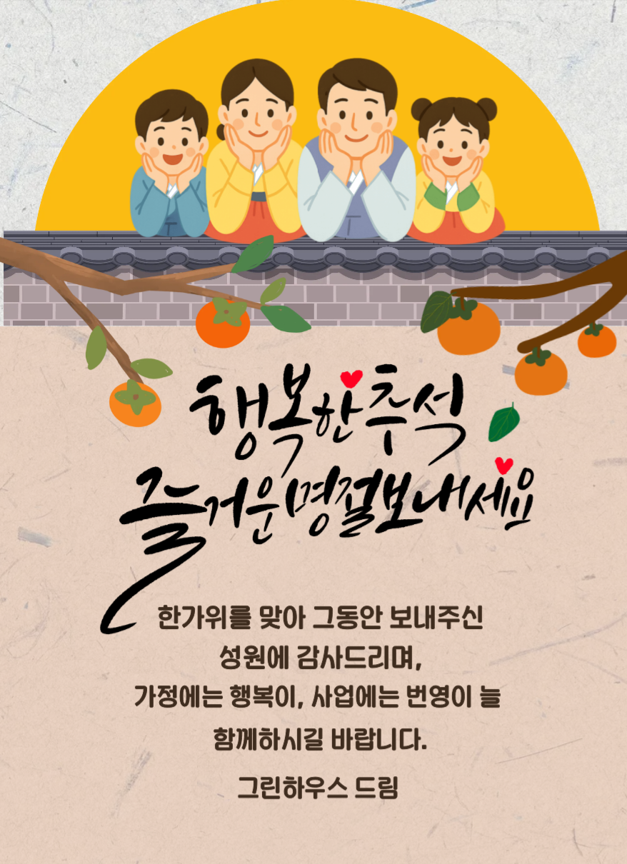 보름달처럼 둥글고 넉넉한 행복이 여러분의 가정에도 함께하시길 기원드립니다.
